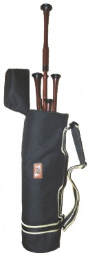 I have routinely carried, along with other instruments, a ready-to-play bagpipe assembled and sticking up from an open-topped square cloth bag with shoulder strap. Because there is no buttoned-up flap to separate them, the various pipes can sway around rather alarmingly and I need to tuck the drones behind my shoulder during transit. It works well enough for outdoor playing and processions, but a bag designed like 970/6D would be much more satisfactory and I intend to copy the idea for my own future use.