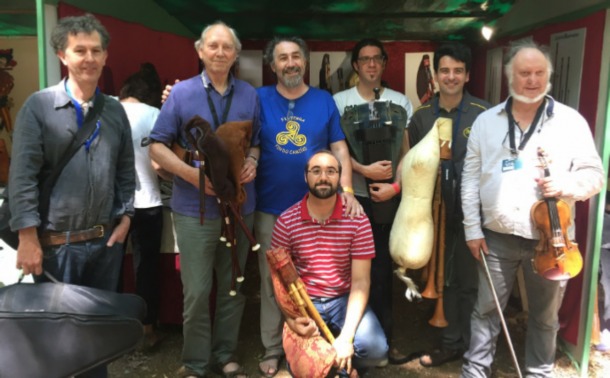 I am sitting at my desk writing this column whilst looking out at grey skies and frequent showers – a sad sight for the beginning of August. Just over two weeks ago I was enjoying almost perfect weather (for me at least) at Le Son Continu in France. As a regular attendee at the festival, the years sometimes blur one into another but what stays in the memory are the odd caught musical moment or the meeting up with a long lost friend. The highlight of the 2017 edition was the first time visit of some Italian musicians and makers who play in the group FiumeRapido. I have long been a fan of theirs and thoroughly enjoy their various video performances on their Facebook postings. I am, I have to admit, something of a sucker for zampogna, especially the very large version which features in the group and three zampogna playing together in harmony really is a joy for the senses. On the Saturday they were joined by Eric Montbel who has been working with them investigating the links between zampogna and sordellina (more about that project will be featured in a future edition of Chanter). If that musical encounter wasn’t good enough, on the Sunday Nigel Eaton, Dave Shepherd and Jon Swayne joined the group – sheer perfection. If you visit my Facebook page you will be able to watch the results of both performances.
