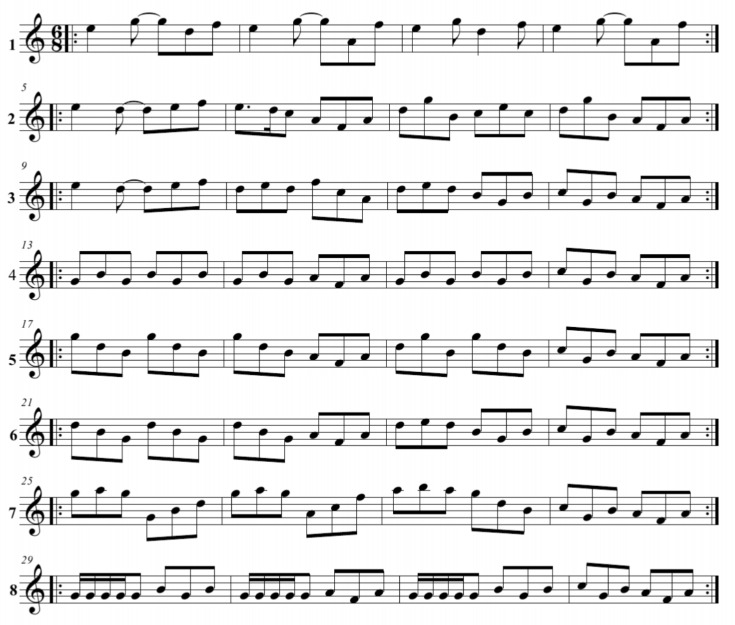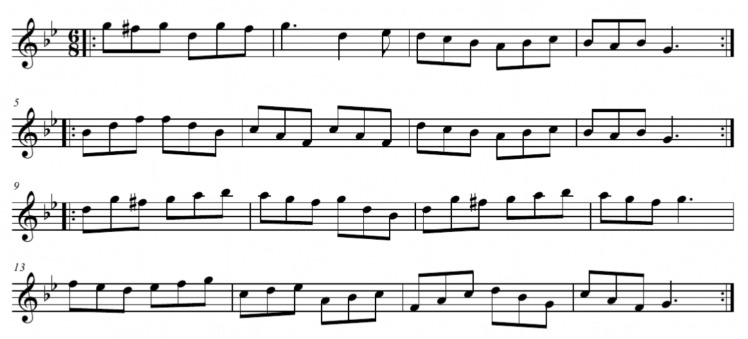This is the tune we looked at in our second workshop. It presents certain issues when playing it; big finger movements in scales, arpeggios and has some incidental sharps. It needs precise fingering and some technique to make it work. I use it as a dance tune.