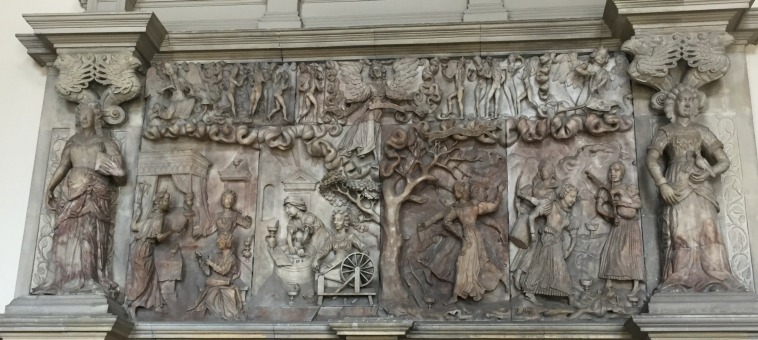 The overmantle carving at Burton Agnes is an excellent translation from the print into stone and other than some ornate gothic architecture, all of the detail is there in the alabaster version. Despite having known the image for so long from various photographs, I was particularly excited at the prospect of seeing it for real. You never really ‘happen to be passing Burton Agnes’ as it is a bit out of the way so, on a recent trip to Yorkshire, a route was planned to visit it. I was completely and utterly blown away and despite knowing the image so well, I wasn’t really prepared for the impact of seeing the sheer size, scale and magnificence of the alabaster overmantle and hall screen in the Great Hall.