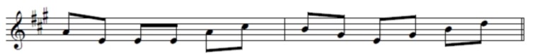 Why did I make this change? The first bar given in the example is clearly in A-major. But by transposing the second bar I created a break in the original melody line, so to reduce the gap, I chose another tone out of the A-major triad and replaced the last note of the bar with it - so the ‘e’ at the end of bar one becomes an ‘a’. Now bar one leads again to bar two.