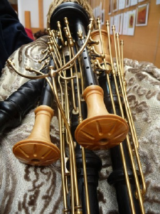 For instance, there’s a whole prehistory to the musette de cour which Rémy Dubois illustrated with his notes on the Ambras instrument, and Eric Montbel and Marco Tomassi with their lecture on the recreated sourdeline. This was particularly interesting as it links the zampogna with the musette de cour through the presence of French traveller François Langlais in Rome, where Manfredo Settala had invented the sourdeline; both men are shown in portraits with the instrument, easily recognised with its two chanters and complex keywork. (One of the challenges of making the instrument is finding an alloy that will make 30 cm long keys that don’t bend.) The sourdeline’s deep, rich voice was heard throughout the three days, adding a certain gravitas to the massed musettes.