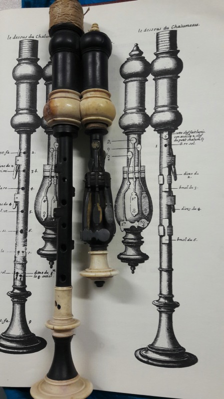 Le Grand Chalumeau: The Grand Chalumeau is made in two parts with a detachable bell and five keys, normally closed. It is tuned at 392 Hz. Borjon’s drawing shows double holes for both G and A while the original instrument has double holes only for G and a single hole for A. In fact, a detailed observation of the drawing actually shows that the A hole seems to have been amended and modified at a later stage. During the measurement I noticed - from my perspective as an instrument maker – some interesting characteristics of the instrument: