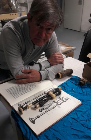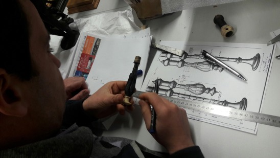 Eric Montbel invited me to work with him on this ambitious project as he had seen in me a luthier who was prepared to take on the recreation of such a complex instrument. I enthusiastically accepted this challenge as I was able to rely on his precious and valuable contribution both as musician an expert on bagpipes. It was thanks to Eric that the Calvet museum allowed me to study and measure such a delicate and precious object, worthy a place in a collection of masterpieces.
