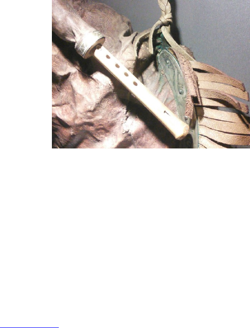 The more I looked at the instrument the more puzzled I became. First of all, the ‘chanter’ has five fingerholes - indicating a very limited range of notes - but also has, towards what seems to be a closed node at the bottom, what appears to be a tongue cut out of the reed but could just possibly be a tuning hole. The other tube is, I suppose, the mouthpiece; if so, there is no drone.
