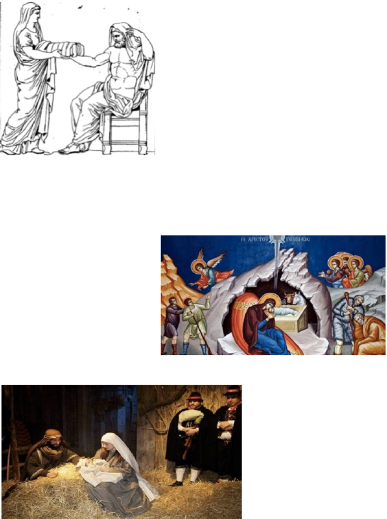 Even today in Italy the Zampogiari play the bagpipe (askavlos) in the swaddled Christ. It may be a reminder of these old beliefs.25