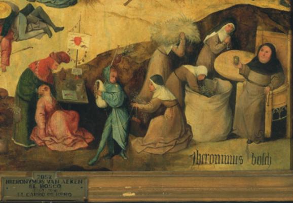 I don’t recall this bagpipe being noted anywhere and he’s new to me. Maybe everybody else knows it! There’s a high res. reproduction at https://en.wikipedia.org/wiki/The_Haywain_Triptych from which I prepared these details. As with all Bosch there’s a story here. Indeed, one of the reasons I cropped it so closely was to eliminate so many other distracting, unfathomable stories, but I did a less cropped version as well. The nun seems to be offering the piper a bunch of twigs, but there’s probably more to it than that. The doctor/dentist has the same in his pocket while behind her, another nun is rummaging in a sack full of twigs, but they’re not quite the same, and the bunch being shouldered by another nun looks more like hay from the wain above.