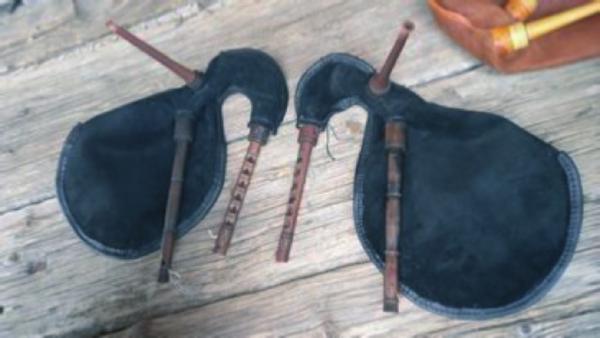 On the Sunday there was a trip to the local museums. First, a small folk museum where Hans and Olle talked about the Swedish bagpipes as well as playing some tunes. The main focus, however, was the so-called Bäsna-Pipa, one of the few sets of Swedish bagpipes which has survived complete with the bag, dating from the 1800s. After this, we had a bagpipe procession, playing some tunes while walking to the next stop, an open-air museum with three very old timber buildings, two from the 1800s and one dating to the 1600s (if I remember right!). There, a folk music demonstration concert was held, with various groups and musicians playing traditional Swedish instruments and tunes. We all played together as a big group, but also my good friend David and I played our historical Swedish bagpipe copies. I had made these, based on the bagpipe from Nås, and it was possibly the first time two historical Swedish bagpipe models had been played together in 150 years, if they ever had been played together!