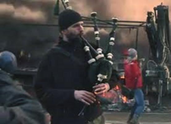 In 2014 reports appeared in the Scottish press about a piper (who asked to be referred to only as Eugene), who was involved in anti-Russian protests in Kyiv, Ukraine in the early part of that year. He was a self-taught piper who had been playing the bagpipe for about five years at the time, usually only at Scottish-themed weddings and other cultural functions in Ukraine. In the course of the interview with reporters, however, he revealed that he had been greatly inspired by the pipers who marched with Scottish soldiers during the Second World War. In an interesting comparison to the experiences of many pipers during the two world wars, Eugene said of his experience at the protest: