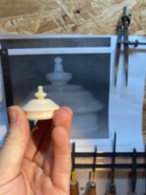 The dimensions of the bell are based on the French instrument D.AD.34674. I made a few attempts in wood, adjusting the total length and bore, until the lowest note (c’) was slightly flat. This way I was certain I could get it to play in tune by removing a little bit of material later. Once I was happy with the dimensions of my wooden bell, I made one in ivory, with the screw thread.