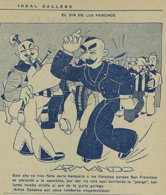 What happened on Sunday in "La Tropical" has no name; it was a real defeat for the regional gaita. A young man from Ourense, who by the cut of his clothes showed that he had just arrived in these lands, was the bagpiper. He was a very well-known and appreciated young man among his compatriots; cheerful, jocund, "boisterous"; with that joy and good humour characteristic of Galician youth, and which is the most resounding lie to the reputation of being gloomy and hermetic hat fantasy novelists have given us. (…) The gaita wanted to be played again, but the stridencies of the metal and the booming of the timbalero, marking the first bars of a danzón, silenced it definitively. (…) The Galicians waited impatiently for the other danzón. The echoes of the gaita, which sang nearby, said nothing, sounded like nothing, did not reach the hearts of those sons of Galicia. Poor alician bagpipes! The bagpiper made a gesture and let his gaita deflate, the last sound of which sounded like a sob…