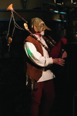 improvisation of my own with two drones and a Breton Veuze chanter. The “Bucca Pipes” are suitably embellished with horns and a skull and do duty for Cornish Guize Dance traditions and the occasional Pagan ceremony. I also have a set of Scottish Smallpipes, Gaita, Fred Morrison’s Reel Pipes and the good old GHBs all of which enjoy an occasional outing.